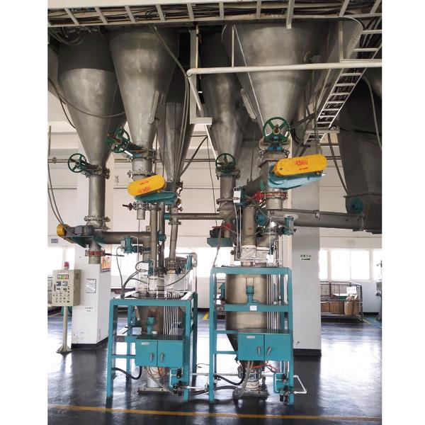 對(duì)于大型PVC管材、型材擠出生產(chǎn)工廠,先進(jìn)的原料混合系統(tǒng)是必不可少的。傳統(tǒng)的混料工序是人工稱(chēng)重配料,投入混合機(jī)組,混合好的物料人工搬運(yùn)至擠出機(jī)。這種生產(chǎn)方式適合只有幾條線(xiàn)的小工廠,對(duì)大型PVC產(chǎn)品生產(chǎn)工廠來(lái)說(shuō),這種方法缺點(diǎn)很多:
